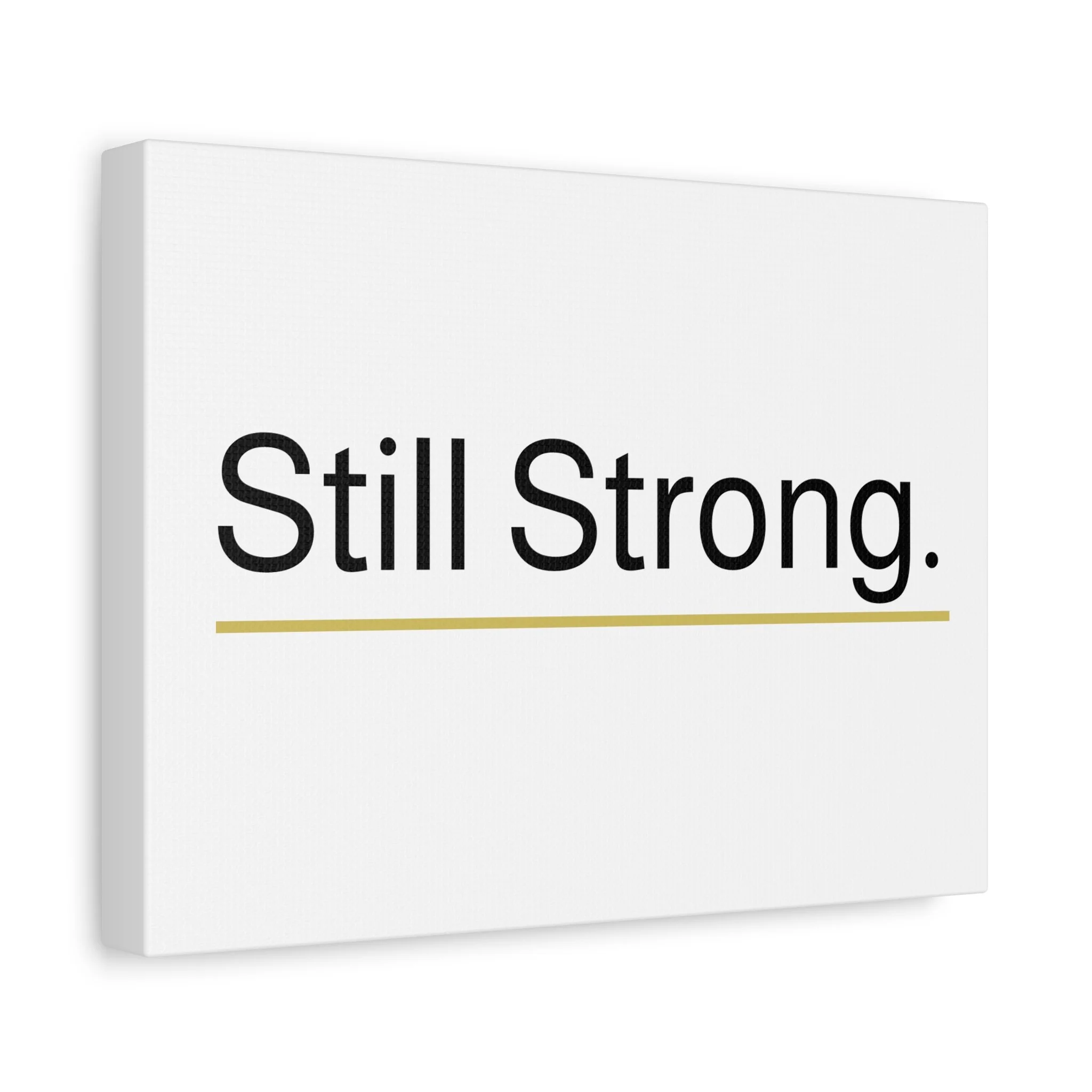Introducing a matte canvas that embodies strength and resilience with its bold 'Still Strong.' design. This stylish piece of art brings an uplifting vibe to any space, perfect for inspiration and motivation. Ideal for home or office decor, it enhances your environment while reminding you and your guests to maintain strength during challenges. This product is particularly relevant for gift-giving during occasions like graduations, housewarmings, or personal milestones, making it an excellent choice for friends, loved ones, or even yourself. Celebrate new beginnings and achievements with this contemporary piece that reflects tenacity and determination.